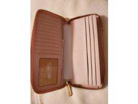 Brown with pink trim Michael Kors purse and wallet set.