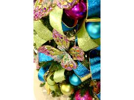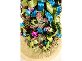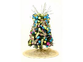 Oh, the places she will go with this stunning Christmas tree designed just for HER! Adorned with gorgeous jewel toned butterflies and turquoise, green, and pink accents, this tree is sure to make her heart flutter. Accompanying this tree: 8 colorful leather clutches from A'biento, a Kendra Scott necklace and jewelry box, a Heidi Houston dress, belt and hat, and $100 GC to Mary & Moss.