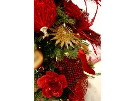 Love is in the air! Flowing red ribbon, feathers and roses adorn this pretty French inspired Date Night Tree. Specialty ornaments, including a beautiful Three Doors glass ornament, and fun date night inspired ornaments are hidden throughout this lovely red and gold tabletop tree. She can get date night ready with Hair and Make-Up by Wendy and apply those final lipstick touch-ups with her new Chanel lip products. You'll both love this French inspired night on the town with Beau Joie Champagne and dinner at Maison Pucha Bistro. Say "qui!" to this tree - get your bids in now!