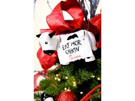 Treat yourself to something delicious this holiday season!! This adorable Chick-Fil-A themed tree comes with Chick-Fil-A Swag like cow ornaments, sunglasses, and even Chick-Fil-A basketballs for working up an appetite. But the real prize is the delicious Chick-Fil-A meals you can get with a years worth of gift cards! This tree is just too yummy to be true!