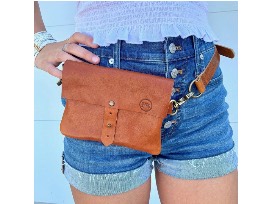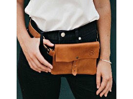 Adjustable waist bag, leather pouch.