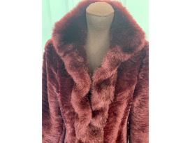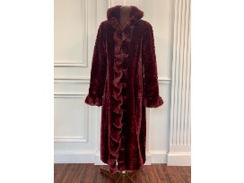 1Ruffled Burgundy Faux Fur Coat from Donna Fabulous Furs