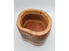 The body of the box is Red Tip Photina which Eddie salvaged from Mariedith Appanaitis's yard from a fallen tree. The jewel is a vintage drawer pull. Mariedith's mom is a retired French teacher, thus the French twist.