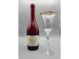 The perfect addition to dinner is the eight-piece set of gold-rimmed wine glasses and a bottle of Belle Glos Pinot Noir. The glasses are Jamestown Clear (Gold Trim) by Mikasa. The wine is from Santa Maria Valley, Santa Barbara, CA and has aromas of plum, brown spice turn to sweet caramel. A perfect combination of old and new world styles.