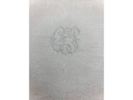 1Lovely set of 6 antique, ivory damask dinner napkins featuring a raised embroidered emblem.