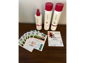 Basket of hair care products, a Free haircut at Nicole Thomas Salon & Free haircut at Great Clips