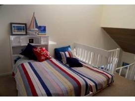 * Two bedrooms (one king bed with bathroom, one queen with shared bath); loft with queen bed and two twins.