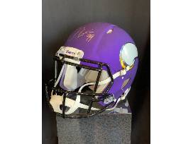 The autographed helmet comes with a letter of authenticity from the Vikings.
