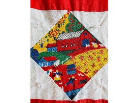 Restored antique quilt top depicting old time American farm life. Backing, binding, and tying were done by hand.