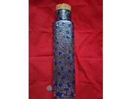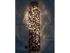Mixed paint combinations on recycled glass. Battery operated, fairy lights included. Paint is applied, waited to cure in the sun and then a sealant is applied . However it is not water-proof.