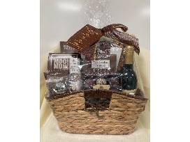 A decadent filled basket of dark chocolate truffles, moose munch, kettle popcorn, bottle of red wine and MORE for you, PLUS...