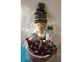 Cute teddy bear, Chicago flag socks, pop-socket, Zephyr Colorado Collection hat, sweatshirt adult medium, sweatpants adult small, adult large t-shirt, water bottle, decal, covid-19 mask in a big Wolf Pack bucket