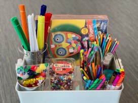 Be the cool parents with an endless supply of arts and crafts projects! This already organized cart makes you look like you've got it all together and keeps you out of Michael's and Target's "arts and crafts" section for at least a few months. This three-level cart is organized into small removable bins to help your kid play with whatever their heart desires (without making a giant mess for you getting it out). The top shelf has every type of writing utensil a child could walk, organized into a caddy that can be carried anywhere. There are also pipe cleaners, pompoms, googly eyes and construction paper. How do we attached those Pom poms, you ask? With the several different types of glue on the second shelf. Liquid, stick, glue gun, glitter glue - you've got it all! Shelf 2 also has a play dough, modeling clay, coloring books and several ready-to-go arts and crafts projects including bead fusion, a color-your-own sun catcher, and a superhero mask making kit. If paint is your child's favorite, head down to the bottom shelf. There you'll find several paint brushes, rollers, stamps and sponges alongside 18 different colors of washable paint. Any of those colors will look great on the seven different wooden paint projects included. Because this is a sanity saver, there are also drop cloths to project your floor/furniture from our tiny artists. To close it out, your kid can leave their art all over the neighborhood with a rock painting kid. Let your little Van Gogh share his/her passion in your home, with friends and the neighborhood. Buy this cart!
