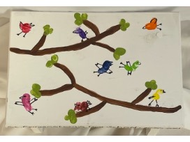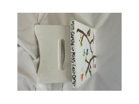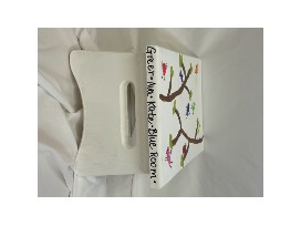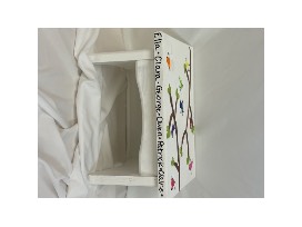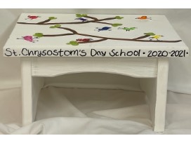 This uniquely detailed step stool featuring "birds" made from the fingers of the kids from the blue room elevates this step stool to a treasured keepsake.