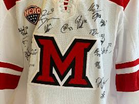 This one is for the biggest Miami Hockey fan! Be the winner of a Miami home hockey sweater signed by the 2020-2021 RedHawks team!
