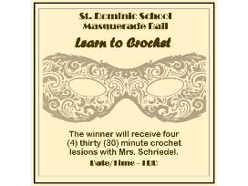 You will receive four (4) thirty (30) minute sessions with Mrs. Schriedel along with a basket of crocheting items to get started. Basket items include crochet hooks; yarn and a crochet book. Crochet Lessons time and date to be determined at a later date between Mrs. Schriedel and winner.