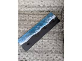 Measurement: Length ~ 24" Width ~ 7.25" Height ~ 9" with hooks (.75" without hooks) Weight: 2 LBS 8 oz 2 layers of epoxy art for design depth with wave pigments and cells.