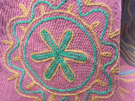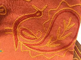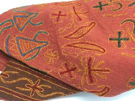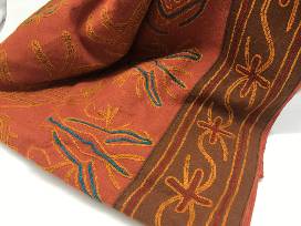 Festive and versatile! An oversize hand-dyed and embroidered colorful cotton tablecloth can be used for a variety of themes. Some minor imperfections and fading are natural due to the one-of-a-kind hand-crafted nature.