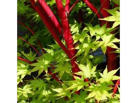 This beautiful small tree has brilliant red-coral bark on its young branches with color that intensifies in the winter. Deeply cut, pale green leaves display attractive red margins and turn a vibrant, golden yellow in the fall. Thrives in bright dappled shade in warmer regions, or in full sun in cooler regions. Deciduous.