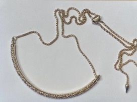 This is a gorgeous statement piece by Kendra Scott featuring an intricately designed gold bar center. It's name, Goldie, is certainly fitting for this piece and will look great with any pairing!