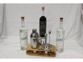 Essential set for beginners & includes all bartender accessories. 24 oz cocktail shaker: the lid layer contains a filter mesh, which can better filter out ice residues, 0.5/1 oz Double Jigger: accurate measurement is essential for perfect cocktails) The kit also has various accessories. In addition to the kit this package also comes with 3 bottles of Du Nord Craft Spirits. 1 bottle of L'Etoile Vodka, 1 bottle of Frieda coffee liqueur and 1 bottle of Fitzgerald Gin.