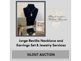 This necklace and earring set by Jorge Revilla are so incredibly, intricately detailed- featuring blue topaz and sapphire in a two-toned setting. They are accompanied with a gift certificate from Sieger's Jewelers for services on a wedding and engagement band that includes inspection, cleaning, polishing & re-rhodium. It even comes with a set of jewelry cleaner and a polishing cloth for you to maintain at home!