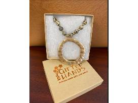 This beautiful Voyager bag by Michael Kors comes in Acorn leather and is perfectly versatile. It's great for a night out or every day wear. A fashion necklace from Gifted Hands completes this neutral-colored package.