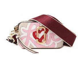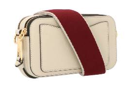 Make a statement without saying a word carrying the leather Marc Jacobs Snapshot Crossbody bag featuring "Love" along the front with dual full top zip closure, back exterior slide pocket, and adjustable, removable shoulder strap with decorative embossed chain-link detail