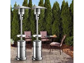These mobile patio heaters keep outdoor gatherings warm and cozy with easy electronic ignition, LED lighting, and up to 47,000 BTUs variable output. Stainless steel makes it durable. The full-length outdoor patio heater vinyl covers are constructed of heavy 10-gauge, felt-lined vinyl.