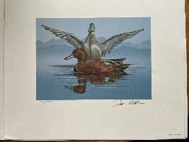 Stamp collectors! This beatuful Cinnamon Teal print and stamp by Dick McRill is in excellent condition.
