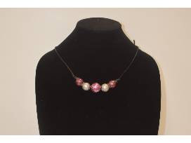 This beaded necklace is adjustable from 18Ó to 30.Ó The five large wooden beads are hand painted.