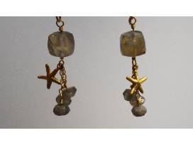 0Labradorite necklace and coordinating earrings. 14k gold fill. Necklace is 17" and adjusts to 19" Necklace and earrings adorned with tiny gold starfish.