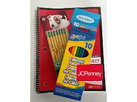 Package includes notebooks, pencils, a $25 JcPenney gift card, a $50 gift card to Old Navy and a $50 gift card to Target. Gift cards can be used at any of their locations.