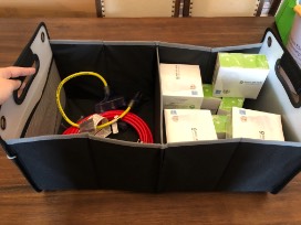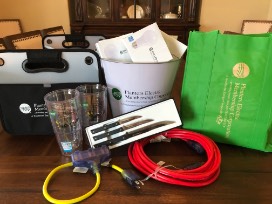 Thank you Planters Electric Membership Corporation for this handy and useful donation! What's included: We've got a Planters bucket, one 25ft. extension cord, a 3-way splitter, a knife set, two 24oz. Tervis tumblers, a Planters EMC bag FULL OF LED LIGHT BULBS, and a super convenient collapsible car caddy!