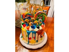 Package includes a personalized cake with your choice of flavors and icing. Two weeks notice is required. Bookings start after April 15th! Buyer supplies any decorations outside of cookies or candy.