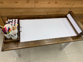 Calling all little crafters! This unique, handmade craft table is complete with everything you need to make all the masterpieces! Thank you K-5 for this awesome donation!!!