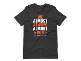 Decorate your football space with O-H-I-O stacking cubes, two vintage canvas maps: one featuring Ohio and one Cleveland, a large OHIO art compilation with 4 sports logos, and 2 small posters featuring the Browns and the Buckeyes. Enjoy the game in a browns shirt that reads "We Almost Always Almost Win", spread your Buckeye pride with a script Ohio logo stand up, 3 Ohio zipper pulls, Ohio earing, an Ohio pendant, an Ohio keychain, a set of buckeye beads, and a small Cleveland script desk topper.