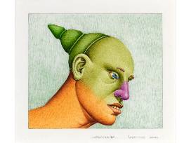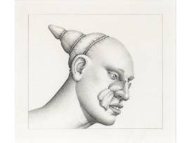 Lives and works in Chicago, Illinois. Robert Lostutter is best known for his brightly colored paintings of mysterious male figures wearing elaborate feathered and flowered masks. However, in the late 1960s and early 1970s Lostutter produced a number of small watercolors and drawings of female subjects where he began to explore many of the elements seen in his later paintings. Inspired by Richard Lindner's practice of taking trips to Bloomingdale's and watching women self-consciously trying on clothes, the girls in these watercolors share both the fascination with costume that would come to characterize Lostutter's later work, and the preoccupation with complicated undergarments held by many of his Imagist colleagues. In contrast to the overt imagery of the women and their clothing, Lostutter also introduces ambiguous surreal elements like a bizarre floating gloved hand, dancing zaps and splashes that are made three-dimensional, and strategically placed, exuberantly blooming flowers. Lostutter often made these works on paper in preparation for larger paintings on canvas. Lostutter's watercolors were the subject of a solo exhibition at the Renaissance Society in 1984 and his work has been included in group shows at the Museum of Contemporary Art Chicago, the Terra Museum of American Art, and the Corcoran Gallery.