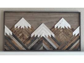 This custom, wood mountain artwork was made locally by one of our Rett grandfathers using reclaimed wood and remnant pieces. Dimensions are 24Ó x 48Ó. This is sure to bring the Rocky Mountain vibe to your mountain themed decor.