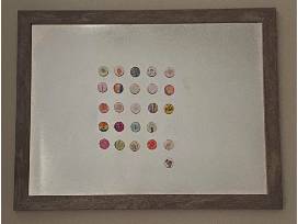 Ms. Waters' 1st graders created a piece of art that was transformed into a magnet, and the magnets were mounted on a 18" x 24" magnet board that can be displayed horizontally or vertically. Hanging hardware included. The students' names are printed on the back of the magnets. A colorful masterpiece for any home. Value: $60.