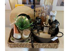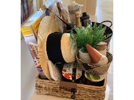 Enjoy some backyard fun this summer with a custom, curated "Backyard/Summer Family Fun" Gift Basket from local gift concierge Megan Garvey (of xo, MG Custom Gifts) featuring: a $25 xo, MG gift certificate to use towards a future custom basket order (of $100 or more value), custom xo, MG candle from Koko's Candles, two custom "STA Past, Present, Future" 24 oz. Takeya hot/cold water bottles, Beyond Outdoors giant connect 4-in-a-row game, A New Day women's straw boater/sun hat, mini black/white rattan decorative basket, Kamp Woods wooden charcuterie board, Iconic Cocktail Co. cocktail mixer, Huss Brewery "Scottsdale Blonde" beer, Chandon California brut sparkling wine, Threshold galvanized metal beverage tub cooler, Smith and Haken bronze garden gnome, Threshold artificial cinnamon fern leaf plant, Threshold designed with Studio McGee banana leaf wicker large entertaining tray, two Buzzy Seeds herb garden grow kits (cocktail herbs and culinary garden), Hearth and Hand by Magnolia striped table runner and "xoxo" notecards from Local Nest AZ. So many special memories ready to be made with this fun gift!
