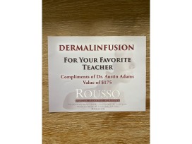 Gift certificate for a Dermalinfusion Facial for your favorite teacher donated by Dr. Austin Adams with Rousso Facial Plastic Surgery