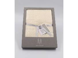 A soft ivory brushed cotton baby shawl is woven in a delicate design and makes the perfect gift for a newborn. Woven in Ayrshire's historic lace mill, with an impressive heritage which dates back to 1900 in an area well-suited to weaving lace due to the damp climate in the valleys. At one time there were many mills operating here, though there is only one remaining mill. Measures 107 x 107cm. 95% cotton, 5% polyester.