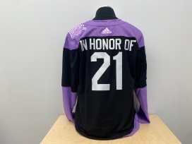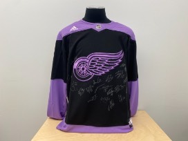 Bid now on this authentic black and lavender warm-up jersey (Size 52) signed by the Detroit Red Wings team during the 2020-21 Red Wings' Hockey Fights Cancer Night. A certificate of authenticity is included.