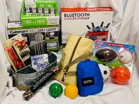 Summer is just around the corner and this basket has your outdoor activities covered! If you are ready to grill outside, use the Cuisinart BBQ Grill Caddy to keep everything organized, FreshJax spices to spice up your meat, and Meat Claws to shred your grilling creations. Gather your family together to play a game of Bocce Ball or hang in the portable double hammock with your best friend and relax while playing some jams on your Bluetooth Cooler Speaker. You can also head to Dicks Sporting Goods to gather even more goods with a gift card.