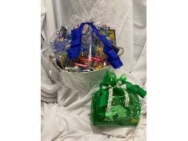 Lights...Camera...Action! This is a movie lover's dream. A basket filled to the brim with movies, movie candy, popcorn, and a 1080P MOVIE PROJECTOR with a massive viewing screen! Use the gift cards to make movie night even better: Amazon, Netflix, and Fandago!