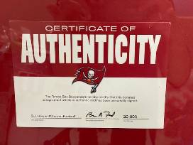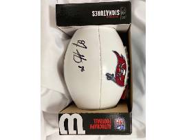 - Embroidered Tampa Bay Buccaneers Flag Logo on the autographed football