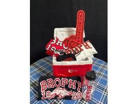 Do you have a son headed to Brophy College Prep in the future, or do you have a child already there? This basket is filled with all the Brophy spirit: A Brophy cooler, mask, long sleeve shirt, 2 short sleeve shirts, water bottle and foam finger,!
