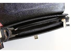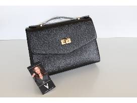 This Vanessa Williams Posh Crossbody Bag is black with gold hardware, has a flap opening with a handle on the top and a gold tab closure. Inside has a zipper closure with a pocket on each wall. See pics for measurements, comes with additional shoulder, body strap and dust bag
