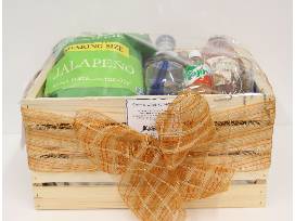 Spice up your cocktail hour with this basket! "Some Like It Hot" includes a bottle of El Nivel Ghost pepper Tequilla, Kettle Brand jalapeno potato chips, organic pink grapefruit juice, tajin seasoning and 2 cocktail glasses.